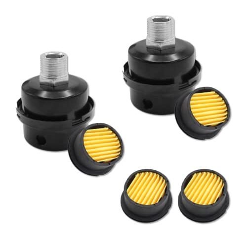 Size: 1/2″ Male Thread, Material: Robust Coated Metal Shell, Includes: 2 Silencers and 2 Replacement Filter Elements, Key Feature: Durable Construction and Enhanced Efficiency