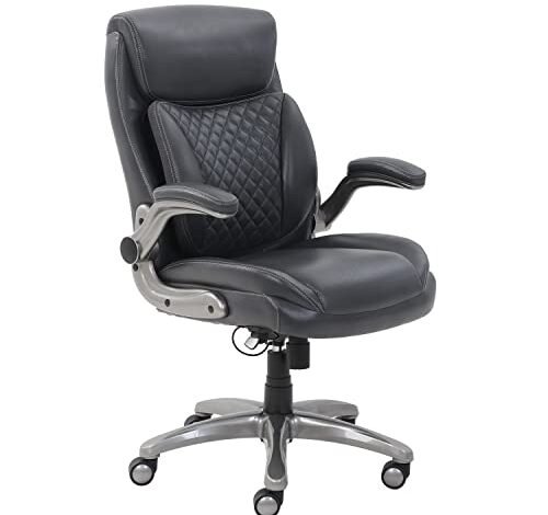 Amazon Basics Ergonomic Executive Office Desk Chair with Lumbar Support, Flip-up Armrests, Adjustable Height, Grey Leather