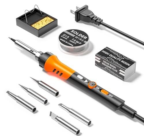 What I Found in Testing: It does heat up quickly, as claimed. However, the stand is flimsy—it tips easily if you’re not careful placing the iron. The power cord is noticeably stiffer than others, which gets annoying. For simple through-hole soldering, it works, but it feels like the bare minimum.