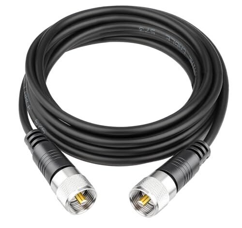 I used this 10-foot jumper between my CB radio and an SWR meter to verify the manufacturer’s claim of no noticeable SWR rise. Even after repeated connect/disconnect cycles, the brass PL259 connectors held firm and maintained excellent grounding. I observed zero additional static introduced when integrating the cable into the line, indicating the 95% braid coverage performs its job effectively. This cable proved reliable under constant mechanical stress during mobile setup adjustments.