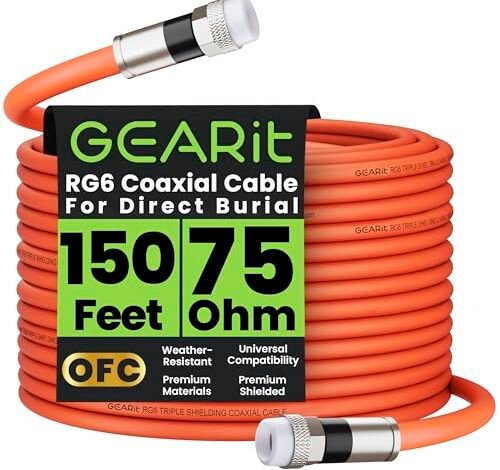 1. GEARit Coaxial Cable for Direct Burial (150ft) RG6 Waterproof