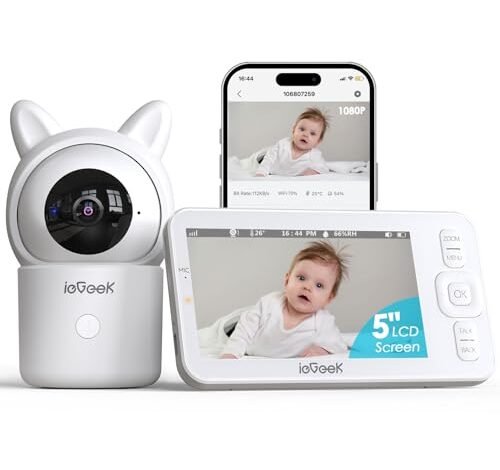 Best Value (Budget-Conscious Functionality): ieGeek Baby Monitor with Camera and Audio, 5″ Screen, WiFi