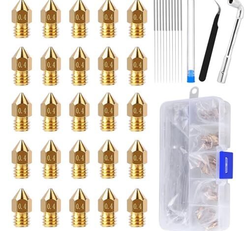 1. Comgrow 25PCS MK8 Ender 3 V2 Nozzles Brass 0.4MM